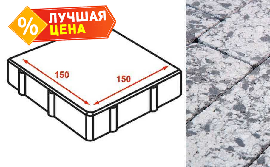 Плита тротуарная Готика Granite FINERRO, квадрат, Диорит 150x150x80 мм
